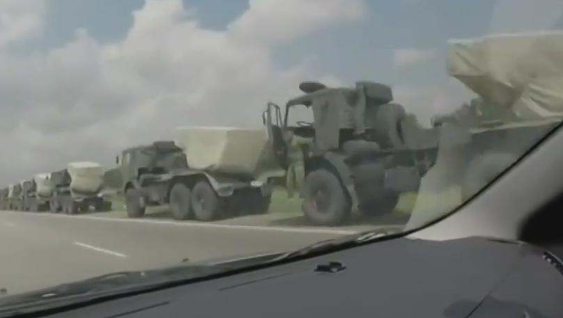 colonnes de chars et autres véhicules de combat foncent à toute allure en